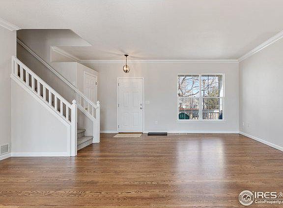 Nestled on a quiet street in a cul-de-sac is your future home sweet home! This sweet 3 bd 3 bth home has freshly finished hardwood floors, brand new high quality carpet, newer kitchen appliances, and so much more! Living area features crown molding, new paint, and is very large and could easily accommodate an office buildout in the front of the home. Kitchen opens to living area and is light and bright and features a good sized island. Laundry, Mudroom and 1/2 bath have new paint, lighting and flooring and feel fresh and clean. All 3 bdrms are upstairs with primary bedroom on 1 side of the home and 2 and 3 on the other. Primary bedroom has a walk in closet, vaulted ceilings and on suite with new paint, lighting and flooring. Basement is unfinished and a fantastic blank slate. Don't miss the crawlspace for extra storage. Clover Creek neighborhood features playgrounds, loads of open space, biking trails, community pool, and is a convenient commute to Boulder and access to 1-25.
