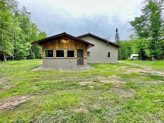 So much to offer! This was built in 2013, has a 20x40 one level living space with a kitchen, bedroom, full bath, and dining/living room space. The open floor plan has new flooring, in-floor heat and an attached screened-in porch. It has 8.36 acres and Bass Brook borders the property. The additional garage space is 60X40, insulated with a workshop, half bath and in-floor heat. Included is a 48x8 out building with electricity, a smaller storage shed and a chicken coop. It is close to town and located less than 2 miles from the Bass Lake public access. There are many possibilities for this beautiful property.