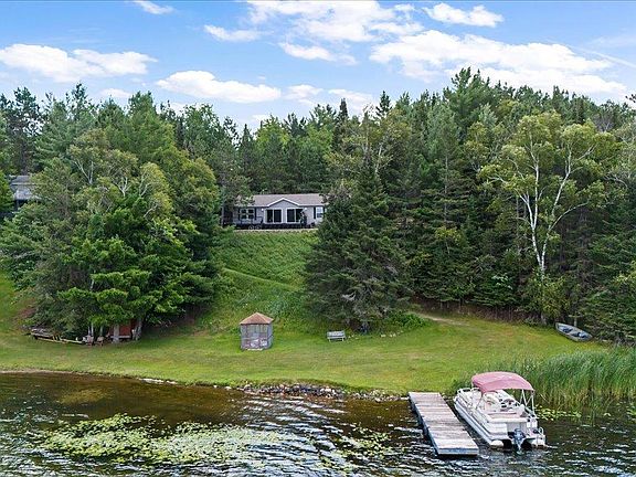 Discover the Wabana chain of lakes where the property spans 2.7 acres and features 164 feet of lake frontage. Enjoy the panoramic views of Lake Wabana and its pristine shoreline. The hard, sandy, and level shoreline is perfect for play, complete with a dock and pontoon. This property includes three bedrooms, a private primary bath, and a full guest bathroom. Additionally, there's a bunkhouse for extra guests. The property is offered turnkey, ready for its new owner.