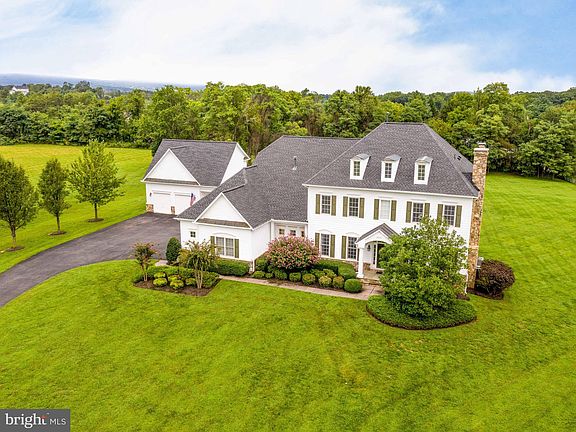 Quality construction, exceptional beauty, and elegance are what comes to mind when you visit this Exclusive Luxury listing located in the heart of horse country in breath-taking Loudoun County, VA. Live your best life on this magnificent property that features 4 premium acres on a cul-de-sac lot lined with mature trees and mountain views. Upon entering you are greeted by an elegant and open 2-story foyer featuring a beautiful curved staircase and Juliette balcony. The main level, which features 10 ft. ceilings and wide-plank REAL hardwood floors, includes a formal entertaining area with a generously sized dining room with butler's pantry, and living room with a cozy wood-burning fireplace. The gourmet kitchen is classic and stately and features stainless steel appliances, high-level custom cabinetry, granite,, exquisite tile backsplash with custom design and oversized custom pantry. Large eat-in area is adjacent to the spacious family room that features a curved wall of windows and a recessed artisan double-sided gas fireplace. The super-sized library shares the gas double-sided fireplace and features built-in shelves and plenty of room for two at-home executives to share this expansive space. The main level features an updated powder room and an Owners-Only full bath adjacent to the garage which provides for easy clean-ups when entering the home through the garage access. The upper level is home to four en-suite rooms including the Grant Master Suite. This elegant room is smartly designed with a curved wall of windows that provides the homeowners with expansive views of the Blue Ridge Mountains and neighboring farms and barns. This suite also features a tray ceiling with moon lighting and a romantic recessed gas fireplace. The master also includes a true sitting room with a wet/juice bar and mini fridge for convenience. The master bathroom is striking with its picture window perfectly placed for your viewing pleasure ensuring the ultimate in relaxation while soaking in your whirlpool tub. Large shower and dual vanities with top-of-the-line granite countertops and water closet. The walk-out lower level has 9 ft. ceilings and is fully finished and includes a possible 5th bedroom with full bath, supersized exercise or media room with dual glass door entry. The recreation room features a stacked stone gas fireplace and mantle, and large wet bar for entertaining. The basement features a number of windows and a glass double door allowing for plenty of natural light throughout the lower level. Other interior features include Custom Closets throughout, Hunter Douglas Window treatments, Central Vacuum, custom lighting fixtures, newly painted, newer carpeting, and a total of 4 fireplaces and over $500K in upgrades. The exterior is upscale Hardi-Plank with a stone water table. The front porch is a combination slate and stone for an exquisite and stately entry. The property features an attached 3-car garage with its own separate entrance and a detached finished 2-car garage and workshop. The carriage house has a secondary level that may be finished for additional space. The expansive yard features a relaxing gazebo and plenty of room to create a custom backyard oasis. Verizon FIOS with a custom 1G high-speed connection. NEW ROOF, NEW HVAC, new added insulation for energy efficiency. This home is truly exceptional!