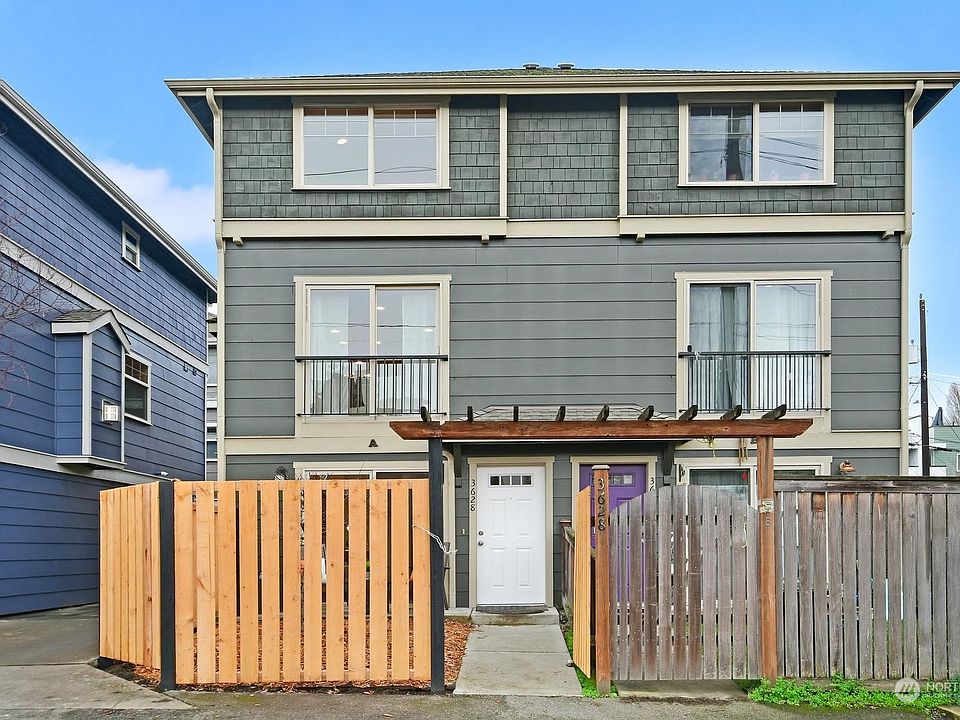A sparkling Mt Baker townhome close to light rail, retail, the lake, parks and more. The home features hardwoods, tons of light and all the right spaces to live your best life. On the upper level, find an open floor plan warmed by a gas fireplace, an ideal spot for hanging out or entertaining. Foodies will love the butcherblock kitchen counters and gas range. The tranquil third level includes two bedrooms with vaulted ceilings. The bathroom has a soaking tub to unwind in at the end of the day. On the entry level, an extra room could serve as a work-from-home office or guest room. The large garage is big enough for a car, gear and even a small shop. Enjoy a summer sunset from the private, fully-fenced west-facing patio.