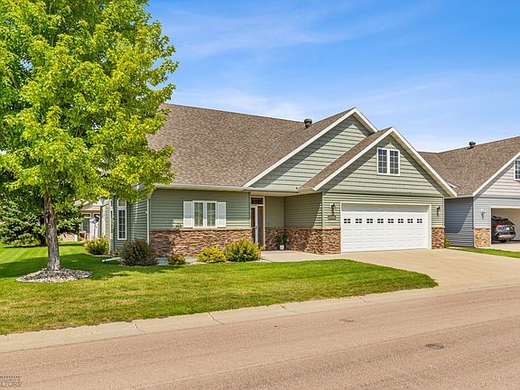 Rare opportunity to own a home in this highly desirable, 55+ easy living community! Enjoy the pond view from your front patio or cozy up to your gas firepit in the private fenced back patio. No step access to this one level home with so many amenities, too long to list! Great curb appeal with exterior steel siding, stacked stone accents, carriage garage door and covered front entry. Equally impressive inside with a wide open floorplan, 10' ceilings, tiled floors and neutral colors throughout. Kitchen has many upgrades with a pantry cabinet (pull outs), granite counters, under cabinet lighting and tile backsplash. Large dining room that opens to the living room with gas fireplace. Bonus sunroom with great natural light, vaulted ceilings, fan, pocket doors and patio access. Two bedrooms and two bathrooms are on the main level. Primary bedroom has a fan, walk in closet and private bathroom with tiled shower (and grab bars), dual sinks and granite counters. Large hall linen closet and separate laundry room has great storage cabinets, hang bar, wall ironing board with washer & dryer included. Upper level loft area (loft dims 23'6" x 11'11") is wide open for hobbies, play or second family room. Finished, heated 2 stall garage has a floor drain, includes white storage cabinets and access to utility and poured concrete crawl space for storage. $220/month HOA covers lawn, snow, and so much more! Sprinkler system. Low specials. Pets ok with restrictions. Convenient location in the center of it all, yet you feel like you're in you're own little oasis. Welcome home.