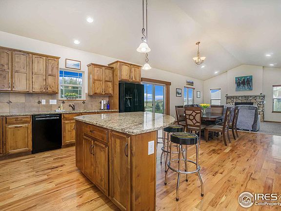 Welcome to this beautiful home in a quiet neighborhood with a rural feel. Perfectly located within walking distance of the brewery and coffee house in Old Town Timnath, the neighborhood is also close to the Poudre Trail, Fort Collins, and the new Timnath Middle School/High School. Thanks to the proximity to Timnath Reservoir, you can even watch the 4th of July fireworks right from the back porch! You will love this ranch-style plan with its inviting front porch and patios. Solid oak hardwood and porcelain tile floors run throughout the main living space, nicely accented by the wood trim work. The master suite makes a wonderful retreat with its adjoining 5-piece bathroom and walk-in closet. The great room, which features a vaulted ceiling and gas fireplace with a custom stone surround, provides lots of space for hosting. The granite kitchen countertops and alder cabinets make this well-appointed kitchen a joy to use, and the large island makes it an ideal gathering spot. The insulated rear-entry garage, with a separate third stall, gives you plenty of space. Outside, a dedicated dog run opens onto a fenced side yard which is a perfect home for your furry friends - and keeps them out of your backyard BBQ! The basement is partially finished with a bedroom and full bath, as well as a study area. In addition, the unfinished portion of the basement makes a great workout area or storage space and has an egress window so it can be finished. A new radon mitigation system (2021) and sump pump are both installed, and the large crawl space (with vapor barrier) is very clean and offers tons of extra storage. In the last year, the carpet was replaced and the exterior repainted. HOA maintains the common areas and trees in the parkway. Owners get free shore use of the Timnath Reservoir and the ability to apply for a boat permit. No Metro tax district.