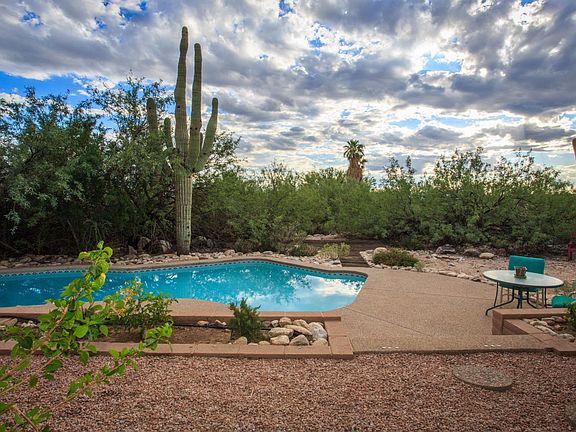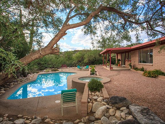 For more information on this property, contact the Listing Agent, Pamela Amanna at (520) 907-5602 or p_amanna@hotmail.com. Exceptional location at the top of Evan Mountain Drive, this lovely & serene home sits on one of the prettiest & most private lots in the subdivision. 3bdrm & 2 baths, the master bdrm, dining room & kitchen face south to sparkling pool in luscious vegetation surround. Quiet & cozy, the living room faces the front range with dramatic views and fireplace. Newly remodeled kitchen w/chopping block counters, dine in kitchen or formal dining area. Landscaped in natural desert yet impeccably groomed. Enjoy the colors green & orange! Come at sunset for knock out views. Please don't let ''Kitty'' out.