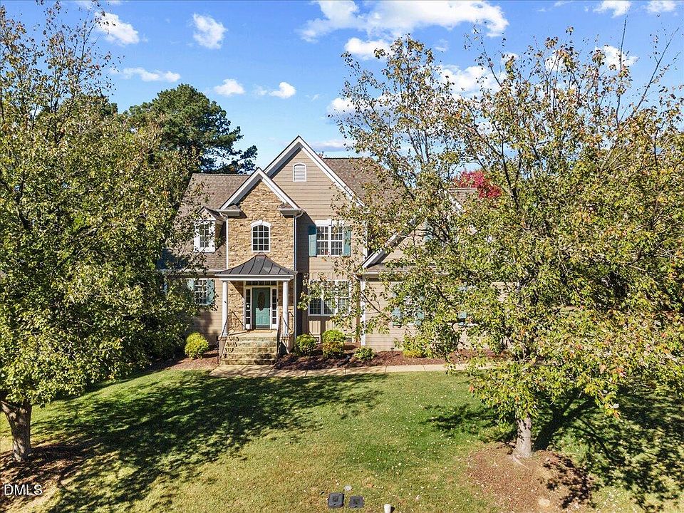 Welcome to this charming custom home sitting in east Apex's coveted Jamison Park neighborhood. Nestled on a beautiful .46-acre lot, the curb appeal is classic with a gently elevated setting and a level backyard ideal for play. Inside, discover a thoughtfully designed, flexible floor plan tailored to today's modern lifestyle, with 5 bedrooms and 4 full baths perfect for multi-generational living. The first-floor primary suite features an updated bath, while the additional first floor bedroom easily flexes as a guest bedroom, a nursery, a home office, or fitness space. The airy family room features a gas fireplace and flows seamlessly into a cozy dining room and spacious kitchen. Natural light pours through oversized windows, highlighting the gleaming hardwood floors that extend throughout the open-concept main level into a bright formal dining room and a convenient laundry room/drop zone that offers everyday functionality with a sink and cabinets. A wall of windows in the breakfast nook offers a bright view of the private backyard. Step outside to enjoy views of the lush, landscaped backyard from the inviting patio, perfect for entertaining or relaxing. Upstairs, you'll find a newly-renovated private bedroom with its own en-suite bath and walk-in shower, a light-filled bonus room ideal for a home office, playroom, or media space, and two more spacious sunlit bedrooms, each with large walk-in closets. Perfectly situated down the street from the community pool and within walking distance of three top-rated schools, this elegant home blends convenience, function, and luxury. Residents of Jamison Park enjoy proximity to the Middle Creek Library and Community Center (featuring tennis/pickleball courts, running track, and a disc golf course), a popular STEM high school, Hwy 540, Crowder Park, and Costco. Together, the neighborhood's unbeatable location and unmatched amenities make Jamison Park one of Apex's most desirable communities - with this stunning home being a must see!