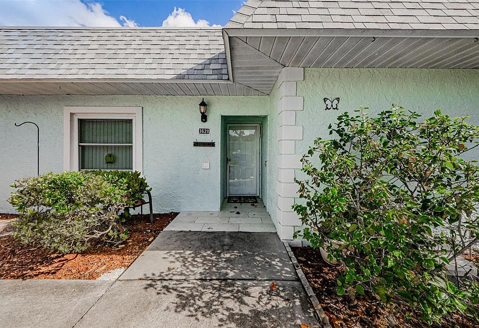 Spacious 2 bedroom, 2 bath highly desirable end unit in the Seven Springs Golf Community. Villa has updated kitchen cabinets and windows. Enjoy some privacy with split floor plan, bedrooms on opposite sides both with ample closet space. The sunroom off the living room provides extra entertaining space or enjoy your morning coffee out on the patio. Property is being sold furnished and includes the second small refrigerator in the sunroom. The villa is conveniently located with everything you would need nearby, shopping, restaurants, hospitals, and Tampa International Airport. The monthly condo fee includes security, cable, insurance, internet, exterior maintenance including roof and pest control, grounds , water, trash, sewer, and escrow reserves fund. There is an optional Social Membership starting around $190/mo which includes events at the country club and access to a restaurant & bar, golf shop, 2 swimming pools, 2 premier 18-hole golf courses, tennis and bocce courts. Come enjoy all that FL has to offer.