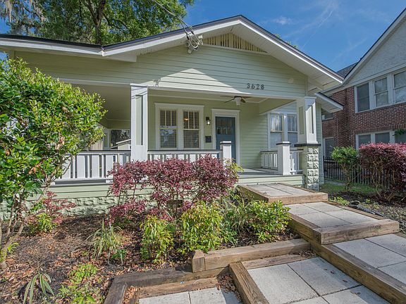 Welcome to this bright and cheerful bungalow in the heart of Avondale! Inviting and vibrant, enjoy your beautiful garden from the spacious wrap around porch. Lovingly renovated, admire original details such as hardwood floors throughout and a brick wood burning fireplace, along with modern fixtures and updates in the bathroom and kitchen. The large kitchen includes butcher block countertops, ss appliances, and has ample storage and room for an island and eating space. Feel confident knowing this 1928 home has structural updates including the roof (2017), plumbing, sealed crawlspace, and a reinforced foundation (Hygema). Tucked away in the backyard you will find a finished detached bonus room ready for your ideas. Centrally located, enjoy the best of Jax's historic district by foot or bike!