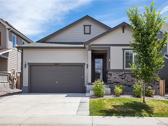 Welcome to this gorgeous 5-bedroom, 3-bath ranch-style home built in 2019. This home has stylish curb appeal, a large front porch, a full covered back patio and a fully finished basement with wet-bar. Walking into the home, you’re invited in to a welcoming wide hallway and tall ceilings, all leading into the open floor-plan kitchen and living space. Chef’s kitchen includes stainless appliances, double ovens, 5-burner gas cooktop, large island and double door pantry. The primary bedroom is spacious and quiet with a gorgeous 5-piece bathroom, including an oversized frameless glass shower and large walk-in closet with a designer full shelving system. On the main floor is the large laundry room with washer/dryer included, a wash basin and full cabinetry, and another full bath between two other bedrooms - or use one as an office! On the lower level is a ton of finished square footage with another two bedrooms and a full bath. The spacious entertainment/living space is complete with a large wet-bar and included full size refrigerator (included). Storage on the lower level is abundant as well. There’s great trail access to the open space within steps of the home. Castle Oaks residents can enjoy all the amenities the Terrain community has to offer including a swim club with 2 pools, parks, a dog park and walking/biking trails. Access to I-25 and Downtown Castle Rock shops and restaurants is only minutes away. Welcome home!