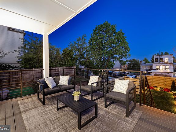 With more than 4,000 square feet, this newly constructed five-bedroom, five-and-half-bathroom home boasts a stunning, contemporary design with a distinctive white brick exterior. The high-end finishes, refined design elements and high-quality craftsmanship continue in the interior with floor-to-ceiling windows, a spacious gourmet kitchen and large living spaces. Enjoy gorgeous views from the rooftop deck, as well as a spacious rear yard and multiple balconies. The rear parking pad provides off-street parking for two cars. This is a rare opportunity to own a truly exceptional property. Owners will delight in welcoming guests through the foyer into a beautifully designed main living area. A splendid gourmet kitchen features a full suite of upgraded stainless-steel Viking appliances including a 48-inch gas range with grill and a custom hood, a 30-inch built-in column refrigerator, a 30-inch built-in column freezer with ice maker, and an under-counter drawer microwave, dishwasher and beverage refrigerator. Calcutta Miraggio quartz countertops, backsplash and 12.5-foot kitchen island with waterfall sides complement the custom cabinetry, complete with a coffee bar/appliance garage. Additional storage is built-in with a custom pantry. The kitchen flows into the dining and living rooms. A Real Flame Corretto 72-inch-wide wall-mounted vent-free electric fireplace creates the perfect focal point for the living room. A wall of glass doors open to the rear deck and garden, creating an open flow for everyday living and entertaining. The front of the main level offers function and convenience with an office/flex space that overlooks the front garden, powder room, and spacious closet for housing outdoor attire. The third level boasts two generously sized bedroom suites with extensive closets and large bathrooms. The front bedroom suite overlooks the park with two sets of large casement windows. The private ensuite bath includes a walk-in closet and Architessa porcelain tile flooring and accent wall. The rear bedroom provides ample storage space with double closets, as well as a private entrance to the adjacent full bathroom, completed with Architessa porcelain tile. Owners will enjoy relaxing on the private balcony or taking the spiral stairs up to the roofdeck with gorgeous treetop views of the District. Centered between the two bedroom suites sits a multipurpose flex room that could be a media room, possible guest bedroom, or exercise/spa room. The lower level is beautifully designed with both function and style in mind. Generously proportioned, the family room is built for entertaining. An elegant 72-inch wall-mounted vent-free fireplace creates the perfect focal point while glass doors provide open flow to the covered blue-stone terrace and rear garden. At the front of the lower level, the fifth bedroom features double closets and a private entrance to the adjacent full bathroom, creating the perfect guest suite. Everyday function and convenience is achieved with the large laundry/utility room designed with a dog-washing station. A flex room could be used as a mudroom, storage, wine room, etc.