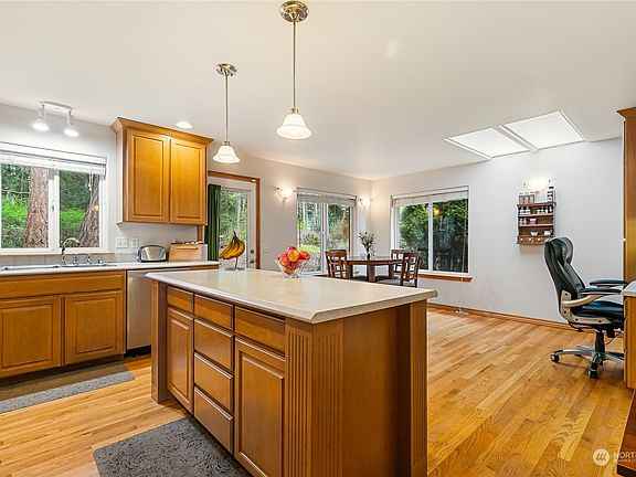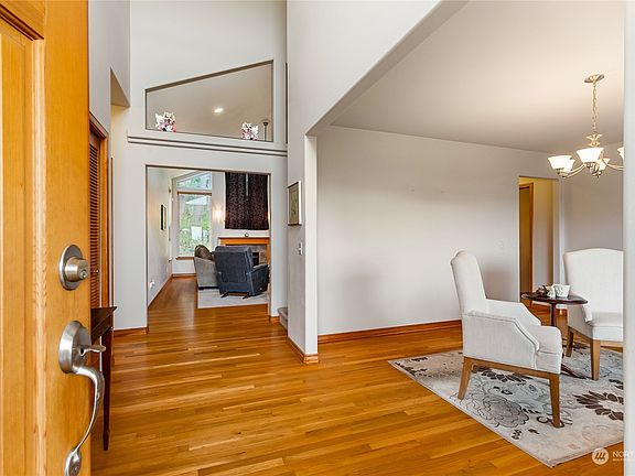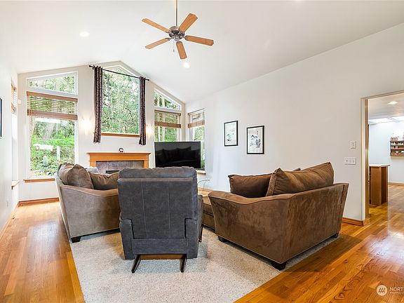 Two Story, 4 bdrm home in the desirable Barkley neighborhood, situated on a quiet cul-de-sac w/North facing views & a backyard that adjoins the treed 40-acre Northridge Park. Hardwood flrs on main level. Vaulted ceiling entry & living rm w/FP & picture windows overlooking the serene, wooded views. Island kitchen w/eating space, skylights, work area. Formal dining. Primary suite on the main level, dual sinks, tub, walk-in closet & separate shower rm. 3 rms up w/territory views. Includes central A/C, Honeywell full home generator & Tesla level-2 wall connector. Located minutes 2 Barkley Village & Lake Whatcom