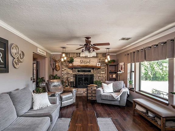 PEACEFUL COUNTRY LIVING! Don’t miss this 4 bedroom, 2 bath home with 5 wooded acres and highway frontage. Walk into this lovely brick ranch style home with a covered front porch, landscaped yard and beautiful mature trees. Spacious living room has a full brick fireplace with gas logs for winter evenings. Updated bright country kitchen, granite countertops, farmhouse sink, lots of cabinet space and pantry. Stainless steel appliances include range, dishwasher, refrigerator and microwave. The center island can stay with property! Dining room off kitchen/living room is great for family gatherings. Master bedroom is large enough for your king size bed, furniture and has two closets. Master bath has a shower and vanity. Three more bedrooms with a updated full shower/tub combination conveniently located. Utility room with storage and access outside. Tile is in entry, kitchen and baths, wood flooring is in all other rooms. 200 square foot basement/storm shelter with plenty of room for storage. Two car attached garage is great for Oklahoma weather. 30x22 ft shop/storage building with 16x22 lean to. 20x10 open shed with metal pens, great for your livestock. Property has pipe fencing around yard and cross fenced. Propane is for gas fireplace only. Home total electric with Indian Electric, Cleveland water and Direct TV Cable. Live in the country life but just 5 minutes from Cleveland, 45 minutes to Tulsa and one hour from OKC. Just 35 minutes to OSU and Stillwater. 100% RD financing to qualified buyers. Call for more information and to view this home.