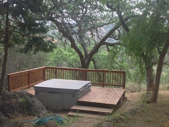 New and improved listing! If you're looking for country living, welcome home! Spacious 3 bedroom, 2 bath on almost 5 acres. Custom flooring in living areas. Lots of windows to enjoy the view! Living/family room has warming fireplace with Italian tile. Master bedroom is isolated and on the main floor with French doors to rear deck. Two bedrooms upstairs have bath and balcony. Kitchen features two pantries, stainless refrigerator (as is), lots of counter and cabinet space. Laundry and sink another amenity. Dining room has French doors to huge deck that overlooks the spa (as is), trees, and your own little bit of heaven with mountain views. Seasonal creek in rear. Fenced and x-fenced; gently rolling/flat pastures, storage, and barn. Separate studio has screened in room, kitchen area, and bath. Land extends back and north. Three car garage. Private well. Come and enjoy the country lifestyle.
