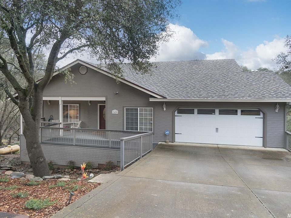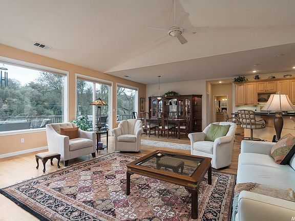 Beautiful 2/3 bedroom, 2 bath home with views off the back deck of running creek and open space, very private. Beautiful wood Red Birch floor throughout, Large great room with fireplace and dinning area that open onto deck. Open kitchen with breakfast bar, stainless steel appliances (refrigerator stays) large pantry, lots of cabinets. 2 Car Garage w/ golf cart parking area, so you can dive your cart right to Cameron Park Golf Course. Has a newer roof (2015) and newer HVAC. NO HOA