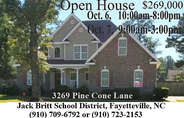 OPEN HOUSE - OCTOBER 6TH, 7TH 10 AM - 8 PM COME VIEW THIS BEAUTIFUL 3 BEDROOM AND 2.5 BATH PLUS A BONUS ROOM!! THIS GORGEOUS HOME SITS ON A SPACIOUS 1 ACRE LOT IN THE JACK BRITT DISTRICT!! CALL ME AT 9107096792 THIS HOME WILL NOT LAST LONG ON THE MARKET! Come view this beautiful home in the Jack Britt district on a 1 acre lot!! Please contact 9107096792!