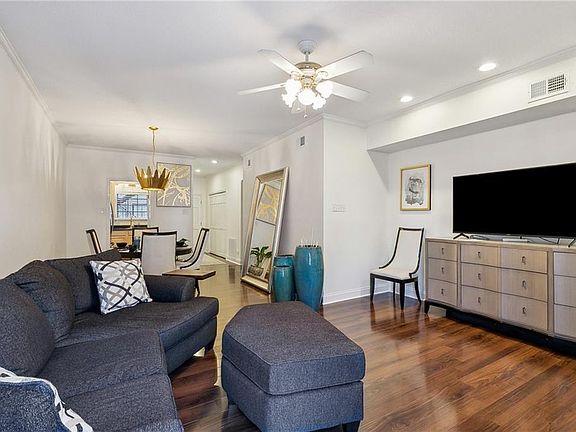 NEWLY UPDATED LIGHT and BRIGHT SPACIOUS CONDO w/ NEW APPLIANCES INCLUDED - AVAILABLE NOW in La Maison De La Bonne Vie Condominiums! This lovely 2 bed, 2 full bath open-floor plan ground-floor condo is a hidden gem in the heart of Metairie, within walking distance of the lakefront and other attractions. 9' ceilings, open plan, plenty of windows and 32 can lights throughout add to the spacious, home-like feel. Fresh updates include new easy-care, water/scratch-resistant wood-look flooring in main areas and bedrooms, marble flooring in bathrooms. Both primary and second bedroom accommodate king-sized beds as well as room for other furniture, including work/study desk area. Plenty of closet space: double closets in each bedroom, large primary bedroom walk-in closet. Efficient kitchen has been renovated with extra high base/upper cabinets/under cabinet lighting/granite counters, HUGE pantry, NEW LG fridge (fingerprint-proof stainless counter-depth French door, multi-drawer, double ice maker), and NEW LG dishwasher. Laundry includes NEW water heater, NEW LG tower washer/dryer with great additional storage space. Bath updates include marble flooring. extra high base cabinets, wall-to-wall/counter-to-ceiling beveled glass mirrors as well as mirrored medi cabinets, all new gold faucets/shower fixtures, designer gold grab bars. Assigned parking is convenient and visible from unit window. Enjoy coffee on the private patio or relaxing inside by the fireplace. Condo fees attractively low. Seller will consider sale of decorator furnishings package. MUST SEE to truly appreciate this beautiful home!