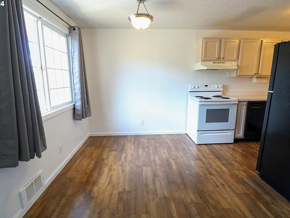 Discover your perfect retreat in the picturesque North Bend, OR! This charming duplex offers three bedrooms and one bathroom. The inviting interior features new carpet and fresh paint throughout, creating a bright and welcoming atmosphere. The kitchen is equipped with essential appliances, including a stove and fridge, ensuring that meal preparation is a breeze.