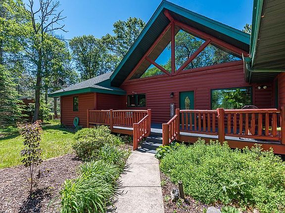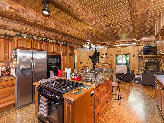 Under a canopy of towering white pine and oaks on over 13 acres of land sits this beautiful 3 bedroom 3 bath home. Built by Red Pine Log Homes the quality and authenticity shine through from the massive log beams and huge split log staircase to the floor-to-ceiling stone fireplace. The sit-in kitchen has a built-in center island with plenty of room for the whole family. The main floor primary suite features a full bath with jetted tub and walk-in closet. The upper-level loft offers spectacular views through a bank of trapezoid windows. The home has a new deep well and was re-painted 6/15/22.