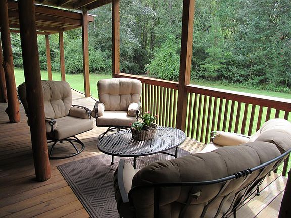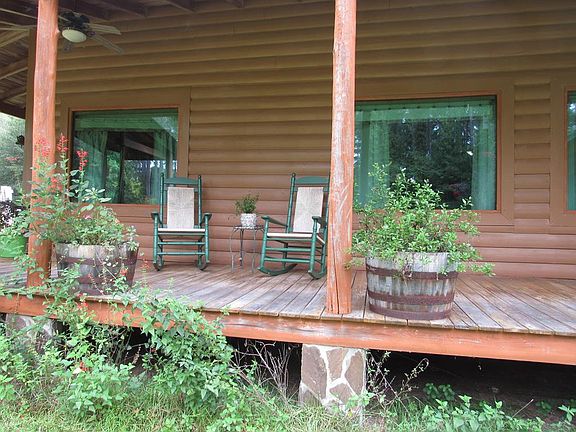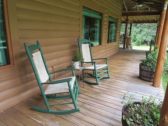 RUSTIC WITH CHARM OVERLOAD!! PRIVATE AND SECLUDED!! Located in a very nice area, this Cypress Log home with metal roof is nestled in 8 acres of Pinetrees. The Interior features gorgous pinewood flooring, cypress walls, floor to ceiling stone fireplace, and lots of large windows to let in the light. The living, dining, and kitchen all flow together for an open concept. A spcious kitchen with plenty of cabinets and counterspace features stainless steel appliances, wine cooler, walk-in pantry and a built-in sit down table. The downstairs master bedroom has a cozy stone fireplace and a large master bath that includes a big garden tub, tiled walk-in shower and walk-in closet. The upstairs features a cozy loft/ living area with two bedrooms joined by a shared bathroom. Outside amenities feature wrap around porches with many areas to lounge, entertain and relax. An upstairs balcony off both bedrooms has a peaceful view of the surrounding forest. Generator hooked to propane included!