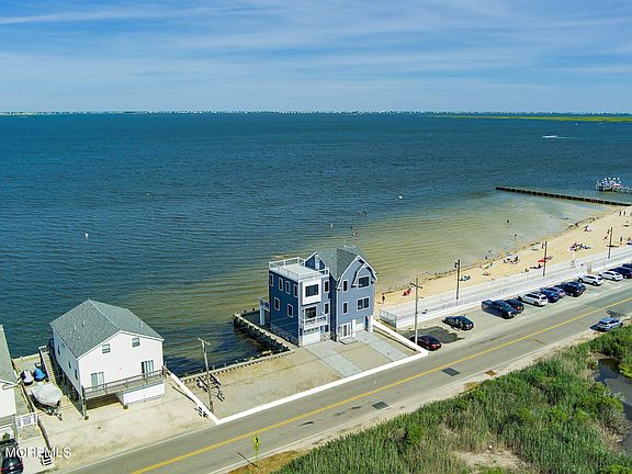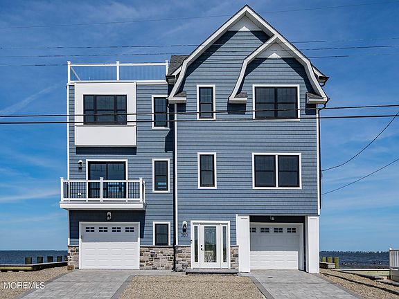 Best bayfront buy in Barnegat!!! Discover the charm of this bayfront home, offering breathtaking water views from every room, multiple decks, and an impressive rooftop terrace. The ground floor features a two-car garage, staircase, custom elevator, and storage space with sliding doors leading to a patio by the bay. On the main floor, you'll find a spacious great room that opens to a full-length deck overlooking the bay, a dining area, a gorgeous kitchen with Quartz countertops and a complete GE Profile appliance package, a versatile office or den, and a half bath. The second floor boasts a luxurious primary suite with walk-in closets and an ensuite bathroom with a double vanity. Additionally, there are three guest bedrooms, a second full bathroom, two more decks, and a laundry room. The uppermost level is perfect for entertaining, featuring a large rooftop deck with panoramic views of the Inlet, Old Barney, and LBI. Do not miss this spectacular waterfront retreat!!!