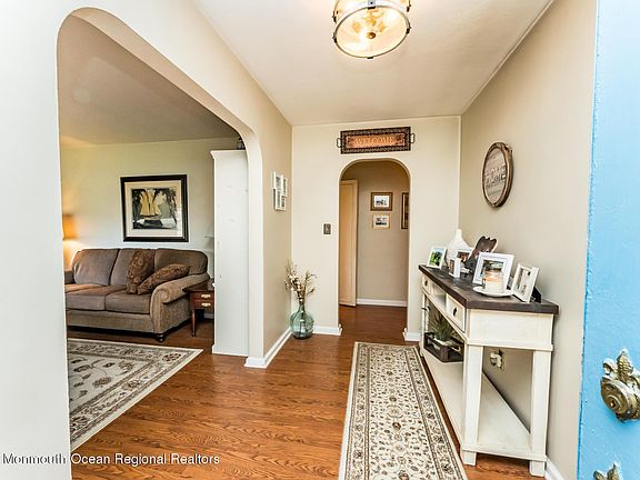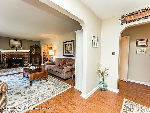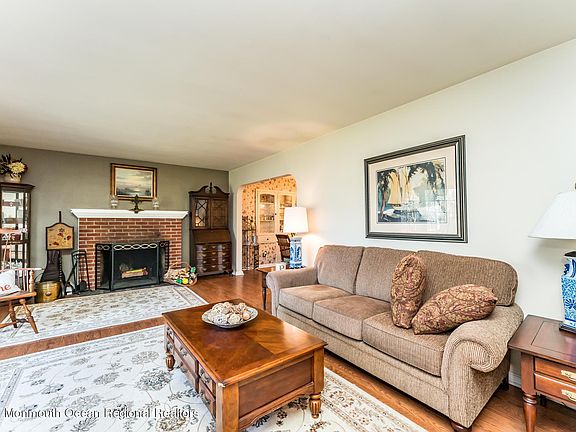 Charming Ranch in an amazing location down the shore. Beautifully maintained inside & out, the layout is open, airy & full of sun. HW flrs extend from the foyer to the large LR. Bay window w/built in bench is a nice touch to the space. DR has an incredible built in china cabinet & those HW Flrs that are in mint condition. Sliders here lead to an updated FR that offers such a modern style. New flrs, cooling tones, crown molding & gorgeous stone fireplace. EIK w/ample storage, peninsula w/dining, crown molding & more. This home was made for entertaining & easily hosting in all of this space! SunRoom is massive! The panoramic windows give views of the yard. Finished basement is an added bonus! Rec space is large & the perfect hang out. All 3 BRs are a really great size. Main BR w/it's own