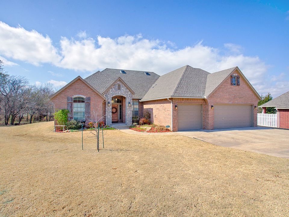 Neighborhood pool,trails and tennis courts! Custom Southern Living design home that had no expense spared. Pottery barn fixtures throughout this gem. Geothermal heat pump makes this house so energy efficient! Large open living area with laminate wood flooring,lovely fireplace and stacked crown. Maple woodwork throughout, in a cooks dream of a kitchen,with black quartz counter tops and amazing storage. Under cabinet lighting, island and a nice pantry. Large master with double stack crown molding and a tray ceiling. Master bath has a great Jacuzzi tub and a large shower. Australian walk around closet that is wonderful! All the rooms are good sized with great closets. The bonus room is large with its own bath. Florida room to enjoy amazing Oklahoma sunsets! Outside surround sound,fire pit,sprinkler system, invisible fence and collars for your furry loved ones. The retaining wall was rebuilt in 2016 and is reinforced with re bar and gravel. The garage has custom floor finishes and a 6 person flat safe storm shelter. Gladiator storage also! Great home, don't miss out!!!