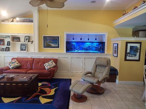 RELAX AND ENJOY YOUR MINI RESORT STYLE LIVING. A MUST SEE. WON'T LAST. Spacious living areas including beautifully designed free-form pool with waterfall & cabana bath, jacuzzi, wet bar, & large barbecue area w/fenced yard. Approved Side parking Pre-rigged for canopy cover. NEW A/C 09/21 and hot water heater 12/21. ROOF 2005. Kitchen with Stainless Steel Appliances incl. S/S Stove Vent, Wooden Cabinets, Custom Silestone Countertops. CUSTOM BUILT IN SALTWATER REEF TANK (125 Gallons, Bullt in system, water chiller) Present owner will give any instructions if needed. Hurricane rated garage door, clam shell Hurricane shutters. All sizes & measurements are approximate.REQUIREMENTS: PROOF OF FUNDS OR DU WITH AS-IS OFFER PLEASE. NO EXCEPTIONS. No offers without Buyer previewing.