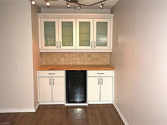 Outstanding one bedroom downtown Condo approx 825 sq feet This unit has it all !! Carpet free unit with updated luxury vinyl plank flooring professionally installed in living room, dining area & bedroom the hallway kitchen and bath have ceramic flooring. The kitchen features stainless steel appliances, granite countertops, stone backsplash and newer cabinets. Wall can easily be removed in kitchen to create open concept living space. The living room features a very unique built-in bar area with bar fridge. Handy in suite laundry. The unit was professionally painted March 30 2021.The dining area has patio doors to your private patio. The other nice thing about this unit is the location, it is located on the second level at the side of the building just a short walk to the pool, sauna, workout room, tennis courts and BBQ area meaning no elevators to take to these amenities. This complex also features a guest suit you can rent through management. Located close to downtown where you will find great restaurants, entertainment, parks, Bud Gardens, shopping and so much more. Looking for that nice place to live downtown well here it is. Thinking of starting or adding to your investment portfolio ? check this one out.