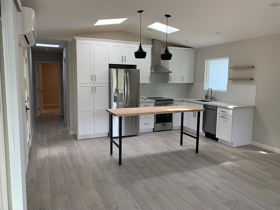 Brand new construction contemporary designed interior, detached 1bed/1bath in-law unit in Westside Danville for lease. Walk to Iron Horse Trail, Downtown Danville, and hiking trails in Las Trampas Regional Wilderness. Full kitchen with stainless steel appliances, quartz countertops, and white shaker cabinets. Engineered hardwood flooring throughout. Full size bathroom with large walk-in shower. Full-size stacked washer/dryer in hallway. Skylights and two sets of glass sliders to private yard area. Brand new split heat/air unit. Walk-in closet with barn door closure in bedroom. Unit is at the front of the lot with ample parking on this quiet tree-lined street right in front of the unit. Unit will have own postal address soon - 363 is main house and owner occupied. Gas, electric, water and garbage included. Tenant pays for cable. Non-smoking only. Prefer no pets, but may be negotiable. First month's rent and security deposit due at signing. Rent may be negotiable or best offer. Looking for a minimum 1 year lease.