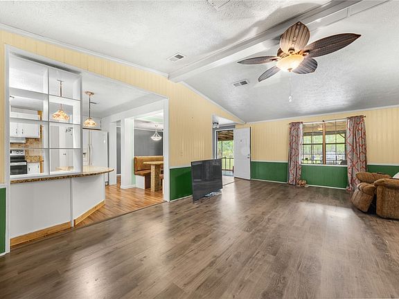 This 3 bedroom, 2 bathroom home on a three-acre cleared lot offers a peaceful retreat. A spacious screened porch extends the length of the front of the home, providing an inviting outdoor living area. An inground pool and a nautical star fire pit enhance the ambiance and entertainment options. Two sheds provide ample outdoor storage space. The spacious family room features an inviting fireplace, access to a bonus room and the kitchen. The kitchen boasts granite countertops, a newly installed range and a cozy breakfast area. A separate dining room provides additional dining options. The owner's suite features two cedar walk-in closets and an ensuite bathroom with double vanities, walk-in shower and soaking tub. The remaining two generously sized bedrooms and second bath are located on the opposite side of the home. The best of country living only minutes from town. You won't want to miss out on this home!