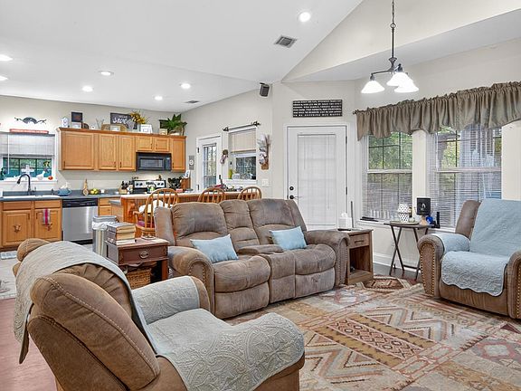 Looking for privacy and a place for your hobbies? This rustic country retreat delivers. Nestled on 3.29 acres at the end of a mature, tree-lined drive, this charming home welcomes you with a huge 20x30 garage built to match the home. The garage features spray foam insulation, a mini-split system, water supply for an ice machine and is wired for an air compressor, making it ideal for hobbies, projects or additional storage. Relax on the inviting front porch, perfect for rocking chairs or enjoy early morning coffee and bird watching from the spacious back deck overlooking the peaceful yard. Inside, the great room offers a warm, open feel, while the primary bedroom is located just off the great room, providing privacy and separation from the two additional bedrooms. The kitchen offers great views of the back deck and yard, enhancing everyday living with a connection to nature. With quiet surroundings, ample space and a versatile garage designed for functionality, this property truly feels like home.