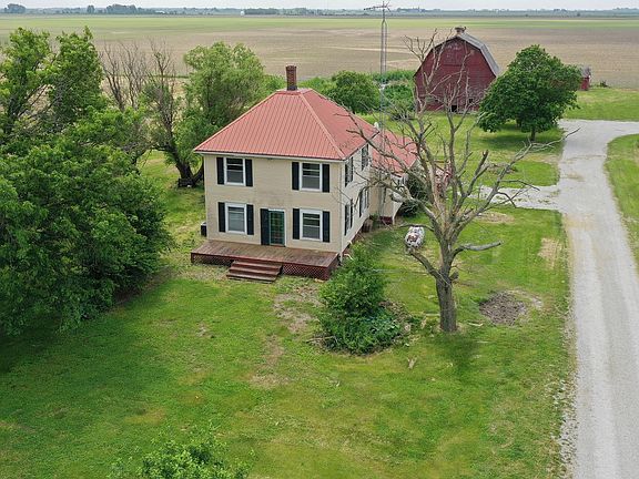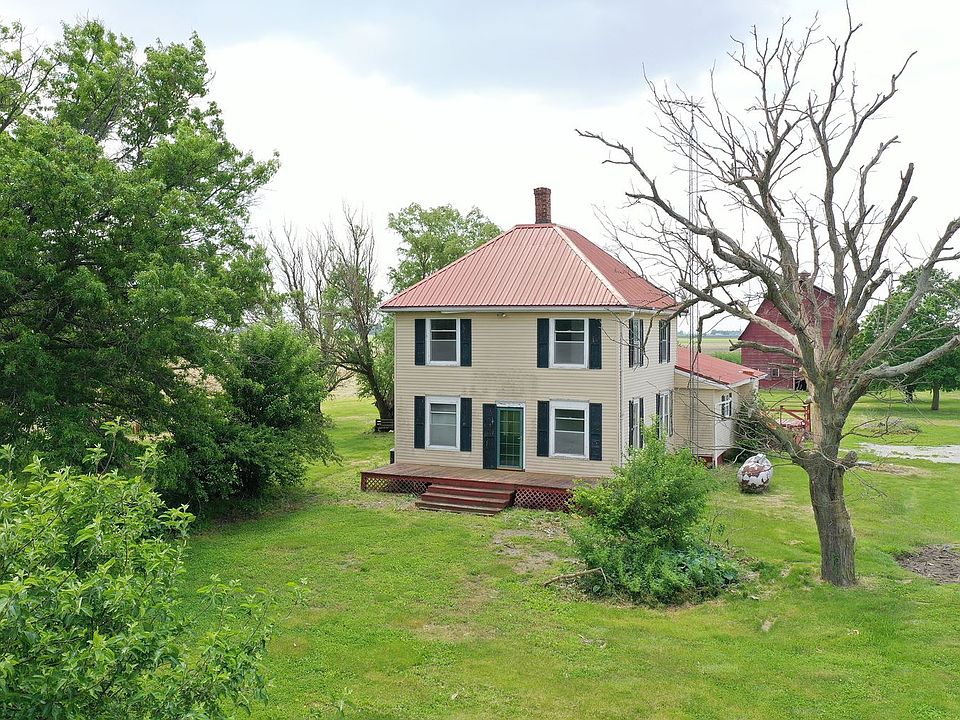 15 Acre Farm with large 2500 Sq. Ft. 4 bedroom 2 bath house. This property has plenty to offer with a 145x60 Morton Building, 47,000 Bushel Capacity Grain Bin, 2 Story wood barn, Corn crib and pasture/hay field. Enter through the heated sunroom with 4 sets of French doors, hardwood floors and wood burning fireplace. Large eat-in kitchen has plenty of cabinet and counter space. Living room has hardwood floors and wood burning stove. Large Formal dining room has a built in hutch. Another great feature is a main floor bedroom, full bath and laundry. Upstairs is another full bath and 3 additional bedrooms with plenty of closet space. Roof is metal and 10 years old. Propane tank is owned and stays with property. Artesian well, large back deck and tons of mature trees. A must see!