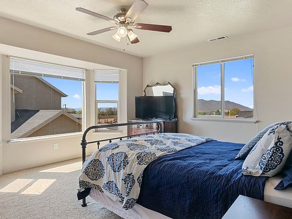 This 2 story home on the bench in Santaquin is just what you're looking for! 4 large bedrooms, 2.5 bathrooms, and a big kitchen/dining area make this house great to live and entertain in. This home has solar energy, newer heating and A/C units, and is in short walking distance to an elementary school, church, and two beautiful canyons. The unfinished basement with its own entrance means equity potential! 2 minutes from the freeway, but tucked away in a quiet neighborhood. Come take a look!