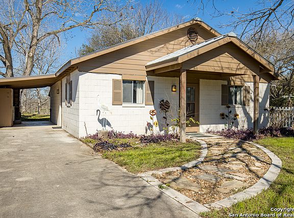 AMAZING RIVER-FRONT VIEWS! Relax in this 1-Story Open Living 2 bedroom Waterfront home. Located on the Guadalupe river, this home is perfect for anyone who enjoys fishing, boating, or just a great view. On the outskirts of booming New Braunfels, with shady trees, tucked away in a little hidden community. Guadalupe Riverfront Attached Carport River Access Single Story Washer Dryer Included No Carpet