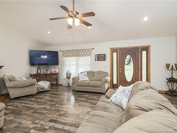 Immaculate, well maintained, custom built home. Enter in the front door in awe of the cathedral ceilings & breathtaking open-ness. Gas fireplace for those chilly evenings. The oversized hallway leads to the 3 bedrooms w/extra-large closets. 2 1/2 baths. Recent updates include flooring on some of the main-level, main bathroom & kitchen countertops. Master bedroom w/a large master-bath complemented w/a jetted tub, double sinks, and shower. All stainless-steel kitchen appliances. Large utility room just off the kitchen area leads to the attached 28X28 (2 car) garage. A partially finished full basement can be used as a family room or 4th bedroom. Enjoy time spent with friends and family in your cozy back yard. Home sits on 1/2 acre just off Hwy 64 approx. 40-mins. to the Sherman Minton bridge & approx. 20 minutes to Corydon.