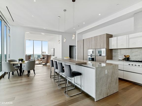 Unparalleled 360 degree views from a full floor penthouse at The St. Regis Chicago. 11'4" foot ceilings and motorized window treatments throughout. Chef's kitchen boasts Snaidero cabinets, Quartzite counters, and Gaggenau appliances. Primary suite with spa-caliber bath. Generously sized secondary bedrooms with en-suite baths. Stunning views from all rooms with floor to ceiling windows of Lake Michigan, Navy Pier, Monroe Harbor and the City. East and West facing terraces. Ample storage throughout. Luxury 5-star amenities include indoor & outdoor pools, hot tub, fire pit, fitness & training rooms, private dining room, demo kitchen, private wine storage & wine tasting room, enclosed dog exercise area.