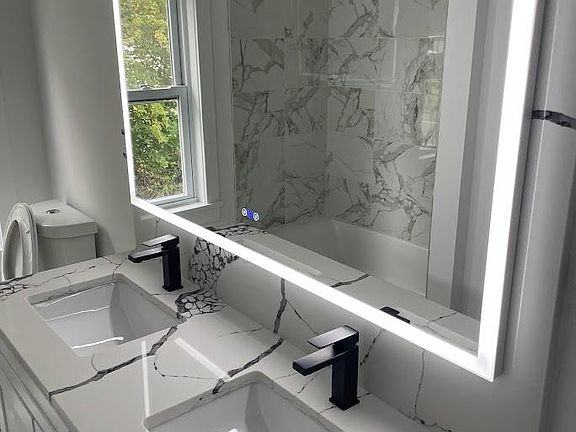 Fully renovated 3 bedroom 2.5 bathroom new central A/C, Two zone thermostat, new custom bathroom, new kitchen, new heating and water, new fireplace , new floors, new washer and dryer new refrigerator dishwasher and gas stove, heating is oil 2 driveway entrance detach car garage oversize , utilities not included Snow and lawn maintenance is included 2 month security 1 month rent $4500 month