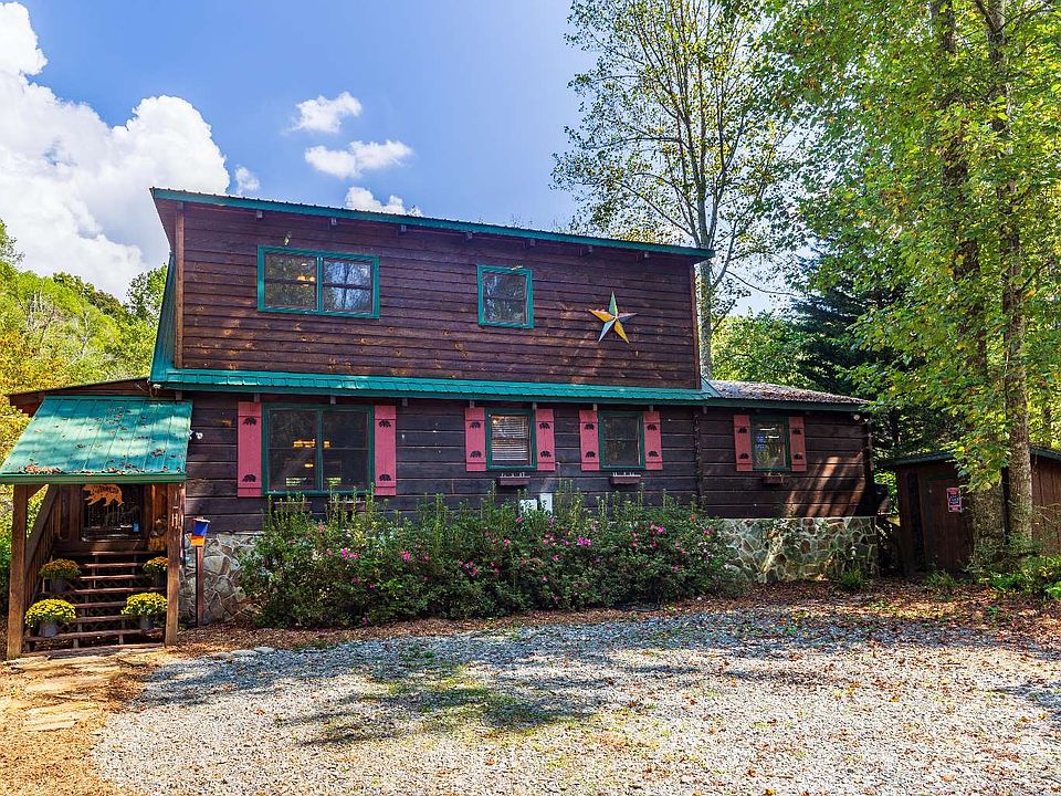 Beautiful RIVER FRONT CABIN just 52 feet from the Cartecay River. This 3 bedroom 3 bath home is an entertainers dream home. Giant media room on upper level, large den on main level, all overlooking the back patios and the RIVER. Featuring large master bedroom suite, with large bath, garden tub and sitting area. Open loft, kitchen, dining area, second bedroom all on the main floor. Second level has large bedroom loft, office, and the media room complete with wet and dry bars. The cabin is ALL wood throughout. Outside has two levels of patio on the river, storage bldg, detached garage/carport. This is a MUST SEE. Perfect for full time or a rental. This is a perfect home for entertaining.