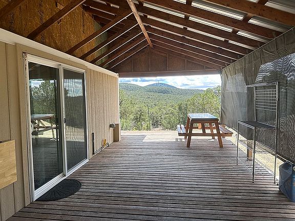 If you are interested please contact at: 505-249-0606 or email at: strategyinvestmentsmadeeasy@gmail.com Virtual tours available. Accepting Cash, owner finance (available with 50% or more down), or loan. Loans available for this property include VA loan, USDA loan, other farm, rural or land loan. Conventional home loan and FHA loans generally won’t qualify for this off-grid property. The Land: This dream come true 2.5 acre off-grid property is zoned agriculture-2 which gives you the flexibility to do anything from using it for a self-sufficient homestead to growing and selling your own food, having a non-profit animal facility, running a bed and breakfast or running a recreational camping business. The possibilities are endless. It has also been professionally surveyed and graded. In addition, fire prevention has been implemented and a fire line has been installed. This magnificent homestead also includes three entry gates with locks and two u-driveways which give access to the lower and higher elevations of the property. There are also two RV/Tiny Home pads. The Views: This gorgeous little piece of heaven is on the edge of the Cibola National Forest. The lower part of the property has a 180 degree view. The south facing view looks out over 180,000 acres of National Forest with no buildings in site. The upper part of the property also has a 360 degree view. Solarium Bedroom: The castle-like structure is 260 square feet with potential of being a studio living quarters or being a master bedroom for a house. Includes a solar system with no maintenance batteries, an off-grid propane/electric refrigerator, a propane wall heater, air conditioning unit with remote, a leather electric-powered loveseat recliner, and a 43” Vizio Smart TV. Internet service is also available to be hooked up. Part of what makes this homestead so rare and unique is the ability to have internet access and phone service keeping you connected to the modern world and the natural world simultaneously. Modern Tiny House Cabin: This quaint cabin has 716 square feet of livable space. The main inside living space has thick commercial-grade insulation (R 30). Includes a galley kitchen, dorm style refrigerator, 3-burner Magic Chef Stove, waterproof, fire-resistant safe, air conditioning unit with remote, and propane wall heater. Last but not least has a full bathroom. Deck space gives extra livable space to enjoy barbeques, use as a work space or simply sit and drink your morning coffee. Lastly, there is external propane plumbing available to hook up a grill, griddle, etc. Has three utility rooms. One of the rooms has a breaker box and houses the solar batteries while another room has an off-grid tankless hot water heater. Third room is storage. Shipping Containers: There are two 20’ shipping containers with 160 square feet of space each. They are steel and have double door access on one end. One of them is empty and usable for storage and the other is built into a shop. The shop has electrical power available that can be plugged into solar or a dual-fuel 12,000 watt generator that comes with it. Solar System: This solar system produces pure sine wave AC power. 5400 Watts (output) 1600 Watts of solar panels (input) 600 Watt Hours Plumbing: The plumbing for both buildings are professionally done with modern wirsbo piping. There are 3600 gallons of stored water available. There is also a well that is 250 feet deep, has 5” OD casing 8-10 feet down, a pitless adapter, a submersible Grundfos TP pump, and can pump 3-5 gallons per minute. Also included is a 1,000 gallon propane tank that will supply over a years worth of propane for heat, power and cooking and also a 1,000 gallon plumbed cement septic tank.