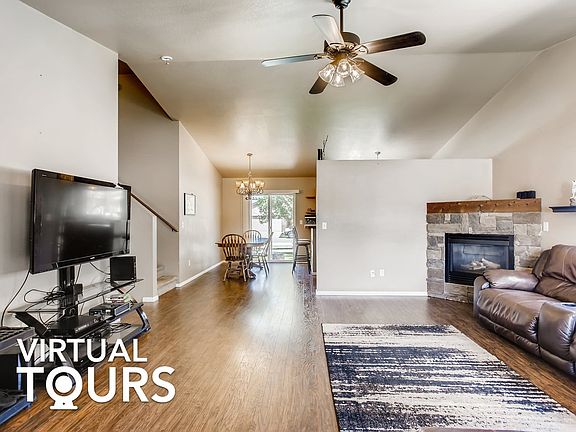 Charming tri-level home with open floor plan. Meticulously maintained 3 bedrooms, 2 bath and 1,920 square feet turnkey home in Loveland! Highlights of this fantastic property include great curb appeal with inviting front porch, spacious open layout, massive basement used as a 4th bedroom, and great outdoor space. Main floor features an oversized living room with high vaulted ceiling, laminate wood flooring throughout, gas fireplace with stone surround and plenty of windows bringing in abundant natural light. Kitchen has been updated with tile backsplash, oak wood cabinets, ample counter space, stainless steel appliances and a breakfast counter with bar seating. Nicely sized dining area has sliding glass door access to the rear yard, ideal for indoor-outdoor entertaining. All bedrooms are well-appointed with carpet flooring, soft natural light and great closet space. The primary bedroom showcases a walk-in closet and updated en suite with marble countertop, tile backsplash, wood cabinets, and a shower/tub combo. Shared hallway bath has a wood vanity and shower/tub combo. Fourth bedroom can be used as a family/rec room and is located in the partially finished basement, with white painted walls, carpet flooring and ceiling fan. Adorned with a concrete patio, grassy area and maintained landscaping, the ample sized backyard is the great for outdoor gathering and weekend BBQ cookouts. Central A/C. Separate laundry room with counter space and storage. Two-car garage. Wonderful location, close to Fort Collins high school, shopping and major highways. Don't miss out the chance to make this home yours!
