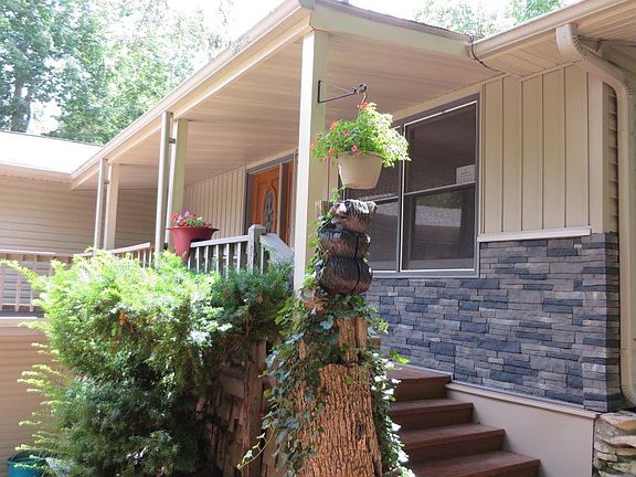 Tucked in and situated on almost an acre with many mature trees this home has had many recent updates to include both inside and outside with lakefront and lake views of Table Rock Lake. Low maintenance, attached oversized two car garage, with a wet weather stream that runs nearby this can be your little piece of heaven. Landscaping that is natural to the property you won't have to spend time worrying about mowing with an exceptional covered deck for outdoor entertaining and sitting back and enjoying your lake view. Recent update to kitchen and baths, heat pump has propane backup, and greenhouse. A 12 x 30 boat slip with lift is available for additional $$$. This longtime home owner has pampered this place and pride of ownership is evident!