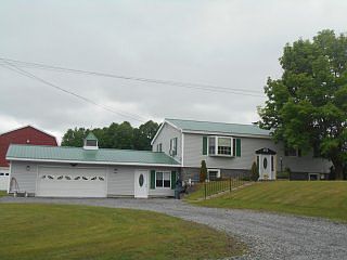 Raised ranch with 3 bedrooms, 2 full baths plus a 1/2 bath and laundry room in basement. Large kitchen with plenty of solid wood cupboards, along with a pantry. Large living room that opens to the kitchen area. Sliding doors off the kitchen area leading to the newer composite 11'11 x 16' deck. Move in ready with multiple heating sources including a new-mac wood add on plus the oil furnace. Large family room in the lower level to include a built in locking gun cabinet. There is an additional room with a safe that could be used as a bedroom if needed. Storage that wraps around under the stairs. Separate laundry room and 1/2 bath. The basement is separated where you will find the two heat sources along with 2 pumps for the well, one leading to the barn the other for the home. Also a large wood storage area in the basement for firewood. A large breezeway separates the family room from the oversized garage. Out side you will find a 30 x 30 barn with a loft area, there is a room in the back where a previous owner would feed his buffalo. A small chicken coop attached also to the back of the barn. There is a large fenced in area ideal for pasture & you will find a water faucet out near the fence line to water the animals. A newer 8' x 30' shed adds rooms for the mower, 4 wheelers or garden tools. An additional 10 x 12 shed and cement pad with a carport can be found off to the side. Raise the roof and have a place to park the boat or motor home. There is so much here to offer everyone in the family as an added bonus located in the MED district and also Brasher schools, need I say more call your agent today for your private tour.