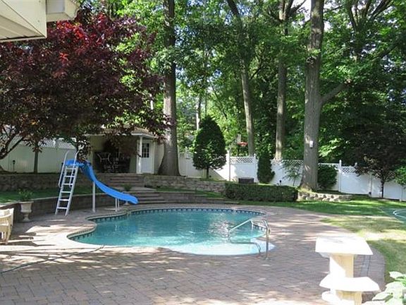 Just minutes to the GW Bridge! Walk to NYC transportation. Fabulous B L with all the bells and whistles! 4bed 3bath includes 2 gas fireplaces, white kitchen with breakfast bar, extended family rm with a wet bar, high-tech security system, in outdoor cameras and speakers, 1 zone has nest controlled htg air , upper level has wood floors. Seller has renovated everything over time w top of the line! Backyard is your Private Oasis surrounded with mature trees! With heated and lighted in-ground pool and water slide, pool lights change to a variety of colors, new pool house, outdoor shower, 1 2 court basketball court, fire pit, beautiful stone outdoor kitchen with pergola. 2 Car Garage, long paver driveway with manicured lawns both front and back! Underground drain system. Amazing low taxes! A must see! Don't miss the Virtual Tour!