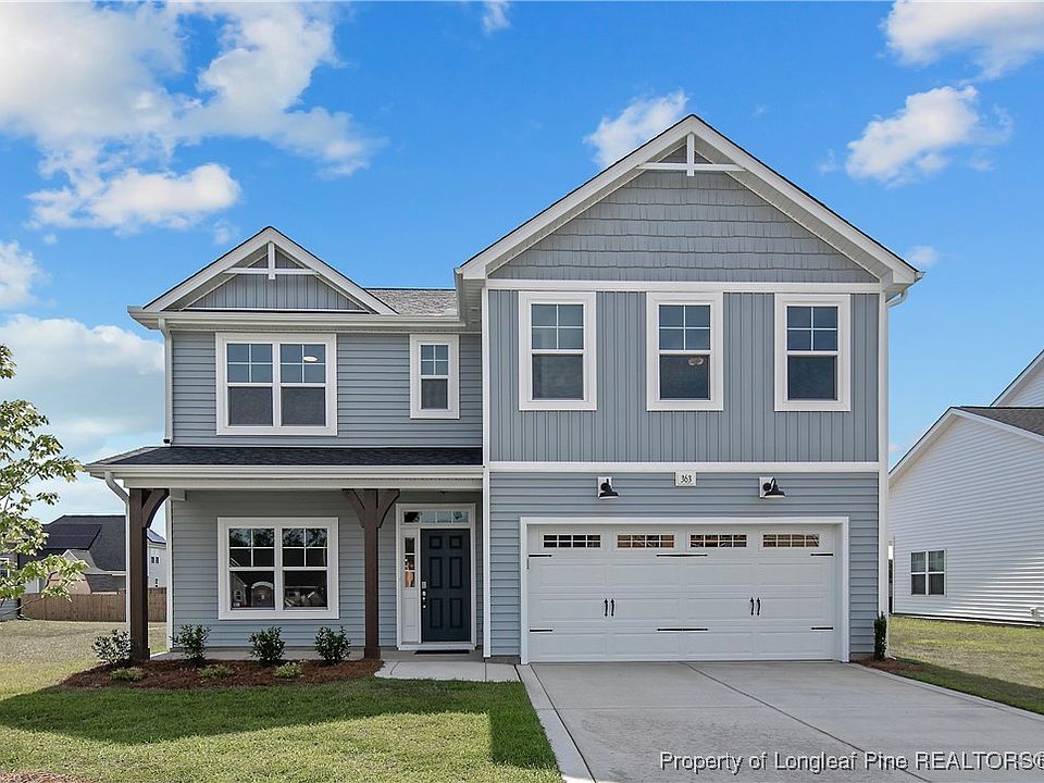 PAMLICO CC 2522 "F" - 5BR/3BA Energy Plus Home with 2522SF! Main Level Features: Kitchen w/Breakfast area, Granite Countertops, Stainless Steel appliances: Range, Microwave over the Range & Dishwasher, Kitchen Island w/sink. Flex Room/Formal Dining Room. Great Room w/gas log FP & ceiling fan. Guest room with access to full bathroom with tub/shower combination. Upper Level Features: Large Loft/Great Room area, Primary Bedroom w/trey ceiling & ceiling fan. Primary bath w/dual vanity sink, large walk-in shower, water closet, linen closet & access to spacious walk-in closet. 3 additional bedrooms w/walk-in closet. Full hall bath w/dual vanity sink, tub/shower combination & linen closet. Laundry Room. Security System. 2 Car Garage. Covered Rear Porch and Grill Patio. Professional Landscaping. Community playground and basketball court! Country living just minutes from Ft Liberty via I95 and 295