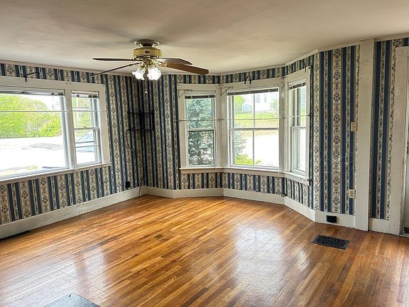Antique farmhouse with water views of the Exeter River. Tastefully update through the years. Family room with hardwood floor and ceiling fan light, abundance of oak kitchen cabinets and new appliances, dining room was being used as a first floor bedroom but could easily be used as a dining room, update 3/4 bath on the first level. Wood stairs to the 2nd level with really solid handrails and spindles, 3 addition bedrooms upstairs with carpet. All the interior ceilings have been sheet rocked and painted, New electric hot water tank 2023, 100 amp electric panel, and generator ready. furnace, gutters, and septic all approximately 10 years old. Enclosed side porch and large rap around deck over looking the flat well landscaped yard and view of the Exeter River.