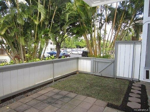 GROUND FLOOR, 2BD, 1BA, 2 PRKG Townhome in Gated Community, centrally located right by Aloha Stadium. PRIVATE, fenced courtyard, WINDOW A/C, ceiling fans, dining area with chandelier. Bright, cheerful, kitchen with refrigerator, electric glass cook top stove/oven, dishwasher, double sink with garbage disposal & white cabinetry. Stacked washer & electric dryer in the home. Walk-in closet in Master Bedroom. Two assigned parking. Community amenities include Pool, Jacuzzi, sand volleyball court, BBQ & picnic area, Club House w/fitness equipment, playground, car wash area, Resident Manager. Water, sewer, trash, parking, Association Fees & Sales Tax are all included in the rent. One year lease w/'military clause', good credit & renter's insurance required. No smoking, NO PETS permitted, $20 application fee per adult.