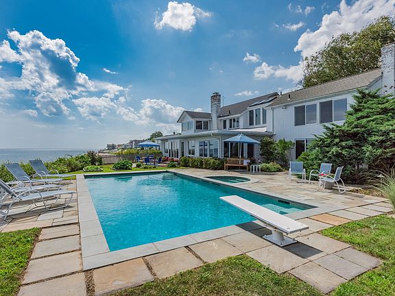 One-of-a-kind direct waterfront property with 335 feet of water frontage on Long Island Sound with spectacular, panoramic views from almost every room. Situated high above the water - no flood insurance!! This picture-perfect setting is magical & you'll fall in love with the unparalleled location. Feel the sea breezes, wake-up to the sound of the waves crashing as the water hits the coast and enjoy gorgeous sunrises & sunsets - it's like being on vacation all year long! Dine alfresco, basque in the sun and relax in the heated, gunite pool and hot tub surrounded by a bluestone patio. Love boating - have a mooring directly in front of your property. This fabulous outdoor oasis is ideal for entertaining! Various sliders connect inside & outside living and rooms flow seamlessly from one to another. Large windows and open floor plan provide an abundance of natural sunlight. Game room with fireplace, poolside access & bathroom could be an ideal first-floor master suite. Detached two-car garage and ample parking for friends and family. Cornfield Point Beach Association offers sandy beach, boat launch, club house, tennis & basketball court. Close to all amenities - downtown shopping, restaurants, marinas, theatre and a quick golf cart ride to Fenwick Golf Course. Only 2 hours from New York and Boston. Easy access via I-95 and train.