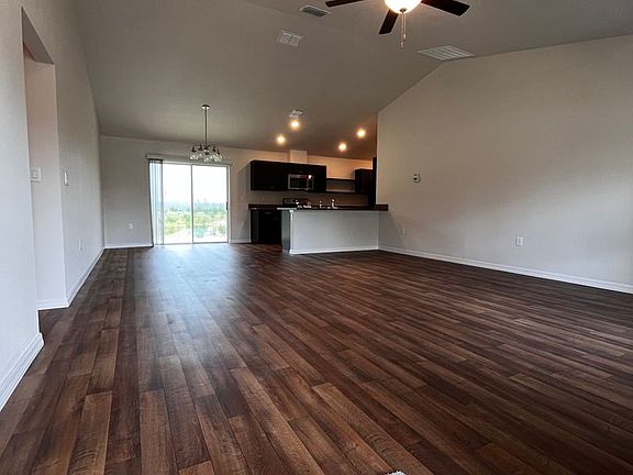 Four Bedrooms, 2 Baths, 2 Car garage, sprinkler system. Vinyl floors in kitchen, dining and living room and bathrooms. All bedrooms are carpeted. Ceiling fan in living room.