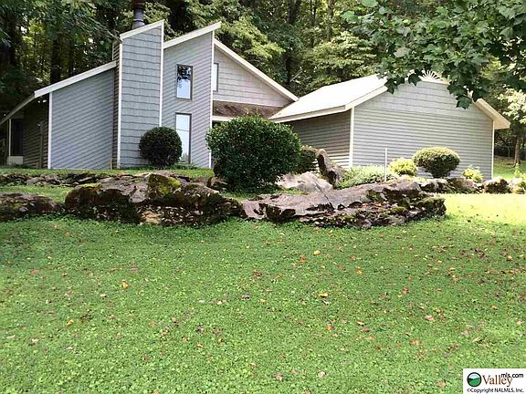 Contemporary 3 bedroom 2 bath nestled in mature wooded lot overlooking cotton fields. Close to Huntsville, Research Park and Redstone Arsenal. Isolated Master suite w/ walk-in, new frieze carpet & patio doors that lead to covered patio. Great room boasts vaulted ceiling, gas log fireplace & refinished parquet hardwoods. Deck off the man cave with amazing wooded views.2 car garage added with lots of attic space lg enough for bonus room & extra storage area. New storm shelter,4 ton HVAC & reinsulated vinyl siding!
