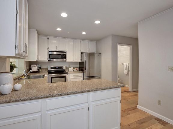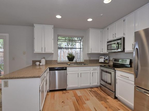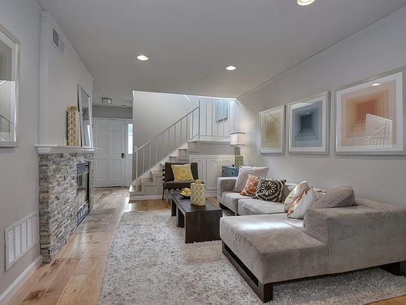 Commuters dream! Welcome to this beautiful townhome centrally nestled in a quiet, cozy small complex (14 units total) in the heart of Mountain View! This spacious home offers two master suites upstairs, each with their own en-suite bathroom, plus a half bathroom downstairs. The open-concept downstairs features bright and airy high ceiling, ample recessed lighting, wood floors throughout, a chic & modern fireplace, and French doors that open into a spacious private backyard. The lovely backyard boasts a large, low maintenance wooden deck thats perfect for both working and entertaining. Two parking spaces include an attached one car garage and an assigned parking. In-unit laundry downstairs. Just minutes to MTV Downtown, Google Headquarter, Caltrain, San Antonio Shopping Center, Safeway, Costco, Monta Loma Park, Stanford University, and more! And, enjoy easy access to 101, 85, and Central Expy/Alma St!