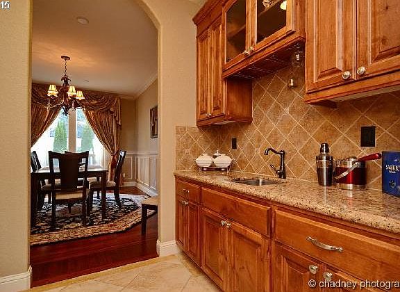 A stone & cedar cabin for him; a contemporary, luxurious mansion for her. Featuring an abundance of rich wood, wrought iron, rock fireplaces, granite and marble slabs, and beautiful Travertine tile. All of which creates the alluring aesthetic of modern elegance with enticing rustic accents. Replete with butlers pantry, 100 bottle capacity wine cellar, wet bar, 4 person sauna, this stunning gem is not to be missed!!